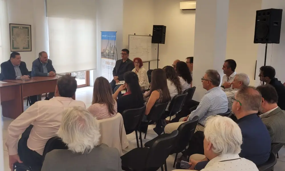 Durante el encuentro, se llevó adelante una charla institucional a cargo del presidente del Consejo Profesional, Agrim. Gastón Berlin, junto al vicepresidente Agrim. Nicolás M. Cafferata y el secretario Agrim. Jorge G. De Luca, en la que se presentó la historia, el funcionamiento y los principales lineamientos de trabajo de la institución.