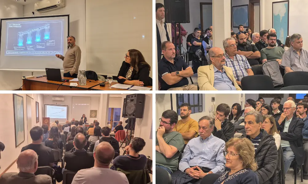 La actividad comenzó con un ciclo de charlas breves orientadas a temas de interés para la matrícula. En primer lugar, la Dra. Laura Di Blasi, asesora letrada del Consejo, junto al Dr. Cristian Méndez, abordaron aspectos vinculados a los honorarios profesionales, la situación actual del ejercicio, la responsabilidad profesional y la ética, poniendo en contexto los desafíos que atraviesa hoy la actividad.